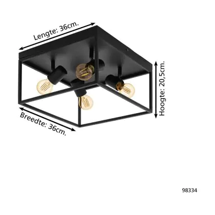 Eglo Deckenleuchte Silentina Stahl Schwarz | IP20 - Geeignet für 4x E27