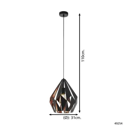 Eglo Pendelleuchte Carlton 1 Schwarz, Bernstein | Geeignet für E27