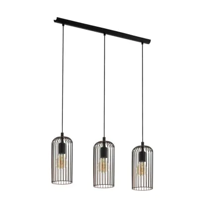 Eglo Pendelleuchte Roccamena Schwarz, Bernstein | Geeignet für 3x E27