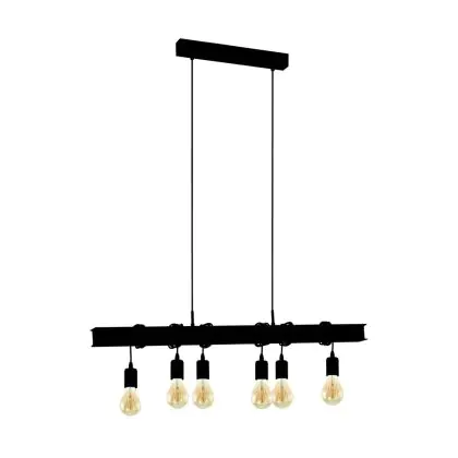 Eglo Pendelleuchte Townshend 6 Stahl Schwarz | IP20 - Geeignet für 6x E27