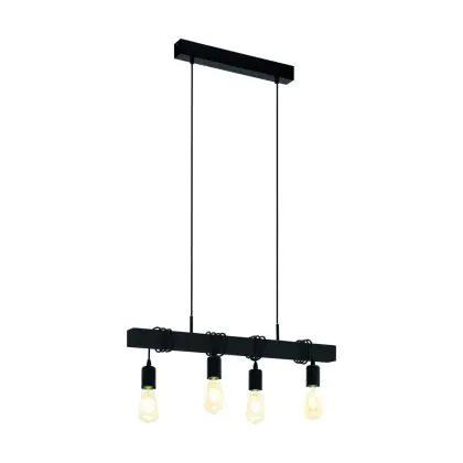 Eglo Pendelleuchte Townshend Stahl Holz Schwarz | IP20 - Geeignet für 4x E27