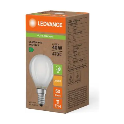 | Herstellername | LED CLASSIC P ENERGY EFFICIENCY A S 2.2W 827 Frosted E14 | |