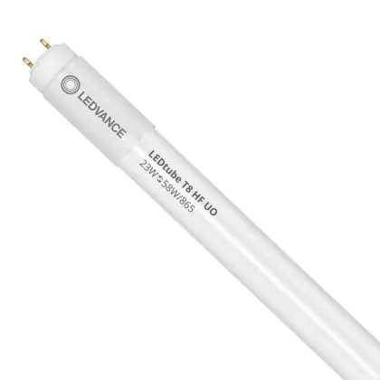 Bei der Ledvance LED Röhre 150cm | 6500K 23W - Performance UO handelt es sich um eine energieeffiziente LED-Röhre. Sie ersetzt Ihre konventionelle Leuchtstoffröhre mit 58W. Die Röhre ist 1513 mm lang und hat die Farbtemperatur 6500K - Tageslichtweiss. Die durchschnittliche Lebensdauer der LED-Röhre beläuft sich auf 75000 Stunden. Wir bieten Ihnen für dieses Produkt eine Garantie von 5 Jahre an.
