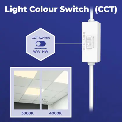 Les dimensions les plus courantes des panneaux LED sont 60x60cm (carrés) et 30x120cm (rectangulaires). Ce sont des tailles standard pour presque tous les plafonds/ des plafonds à grille. D'autres dimensions sont également disponibles, telles que 20x120cm ou 15x150cm.