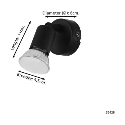 Eglo Applique Murale Buzz-LED Échantillon Noir 2.8W 250lm - 830 Blanc Chaud | IP20 - Incl. 1x GU10