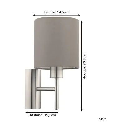 Eglo Applique Murale Pasteri Échantillon Nickel Satiné | IP20 - Convient pour 1x E27