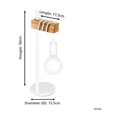 Eglo Lampe De Chevet Townshend Échantillon Blanc Bois | IP20 - Convient pour 1x E27