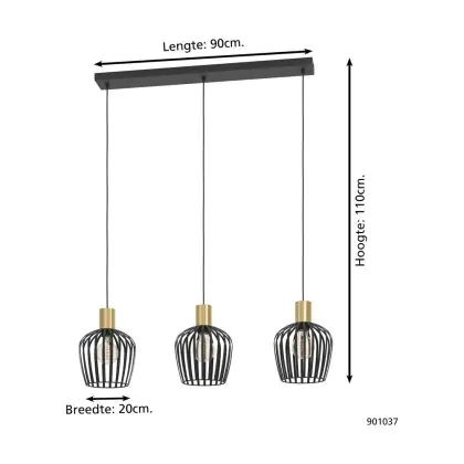 Eglo Suspension Luminaire Empoli Échantillon Noir | IP20 - Convient pour 3x E27