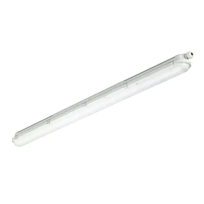 La réglette LED, Philips Réglette LED Étanche CoreLine WT120C G2 21W 2700lm - 840 | 120cm - 3x Câblage Traversant est conçue pour remplacer les réglettes TL-D traditionnelles et permettant d’économiser jusqu’à 50% d’énergie. Très souvent utilisé pour l’éclairage d’entrepôts, d’usines, de parking et d’autres grands espaces extérieurs. Très simple d’installation, cette réglette de 120cm peut se fixer au plafond et au mur et projette 4000K - Blanc Froid, comme couleur de lumière. La Philips Réglette LED Étanche CoreLine WT120C G2 21W 2700lm - 840 | 120cm - 3x Câblage Traversant dispose d’un indice de protection IP65 – Résistant à la poussière et à l'eau (jets d'eau) à l’eau et la poussière et d’une résistance aux chocs IK08.